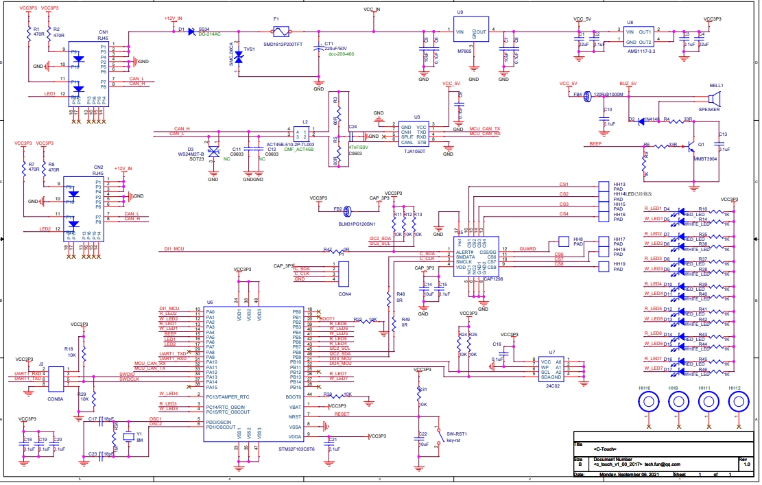 - 触摸部分和控制部分分开,使用CAN网络连接,易于扩展串口、I2C、SPI及其他接口