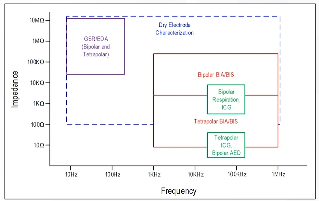 通过测量多个频率下的人体阻抗,可以确定身体组织的成份(脂肪、肌肉、含水量、骨密度),以及细胞内液和细胞外液的电阻来判断水肿。